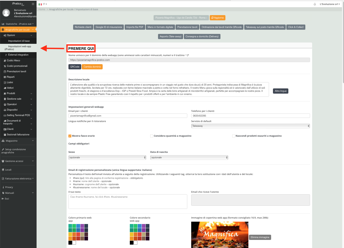 Come impostare orari webapp iPratico eat RIEPILOGO DEI PASSAGGI : PREMERE SU ANAGRAFICHE PER LOCALE OPZIONI IMPOSTAZIONI DI BASE PARTE GUIDATA: Servizio offerto da Intraweb s.r.l. Milano concessionario iPratico dal 2012 - Installazioni chiavi in mano ...
