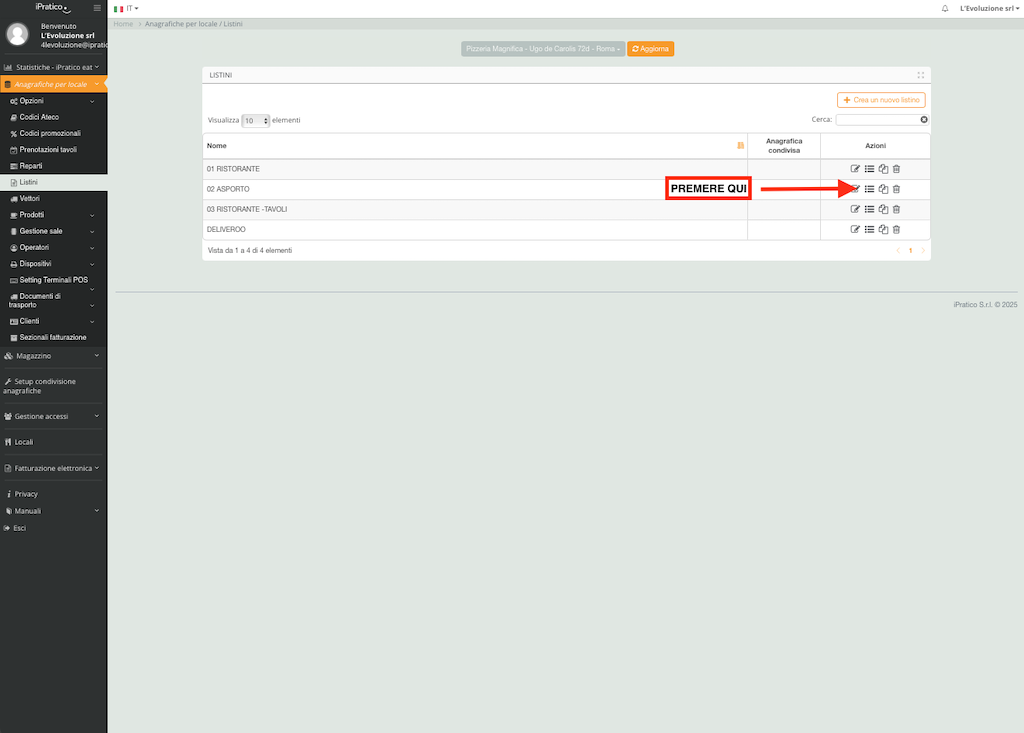 - SELEZIONA L'ICONA DEI TRE PALLINI ALLA DESTRA DEL LISTINO CHE TI INTERESSA MODIFICARE