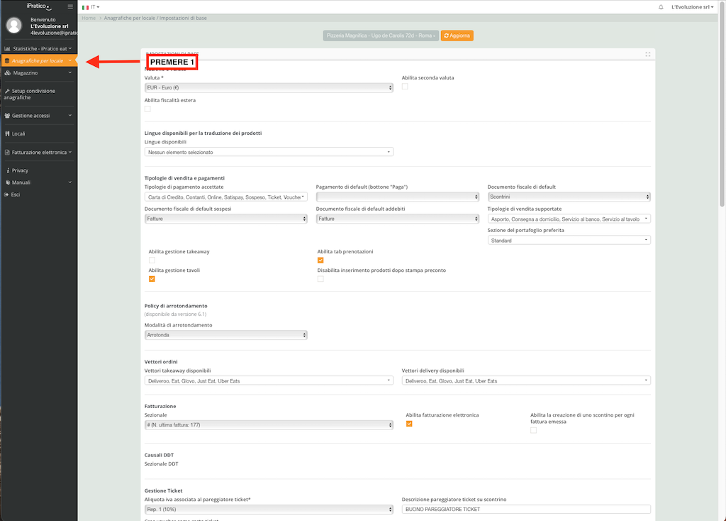 - PREMERE SU ANAGRAFICHE PER LOCALE